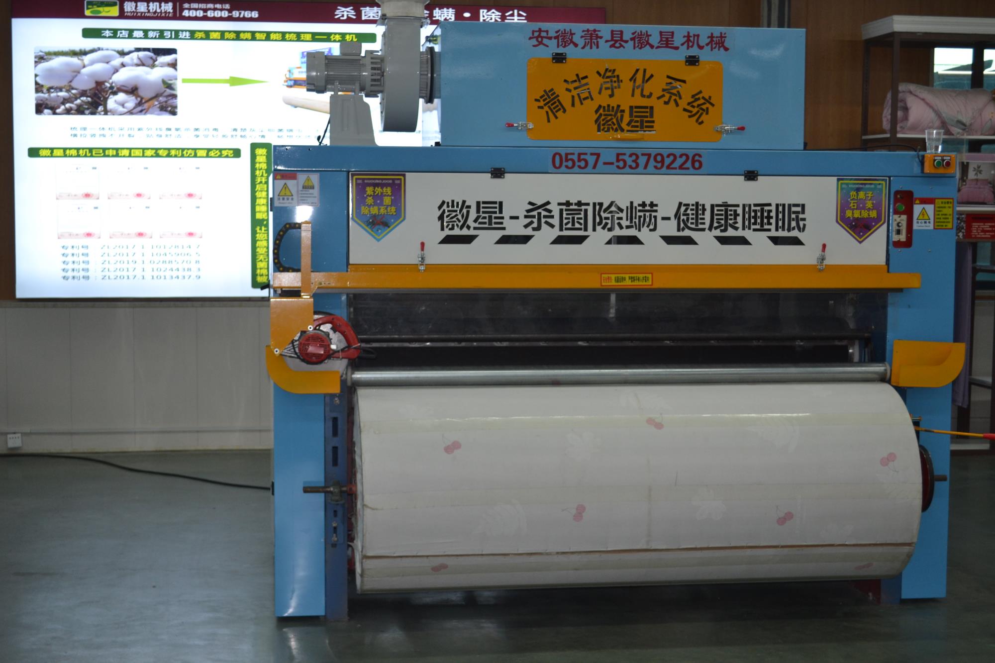 產(chǎn)品簡介:全自動(dòng)彈花機(jī)是徽星彈花機(jī)的專利產(chǎn)品梳棉花機(jī)器,,一次成型全自動(dòng)梳棉花機(jī)器,寬度任意調(diào)節(jié),大小被子任意做,而且是封閉吸塵梳棉機(jī),可用照明電,3千瓦,非常適合沒有三相電的客戶朋友。