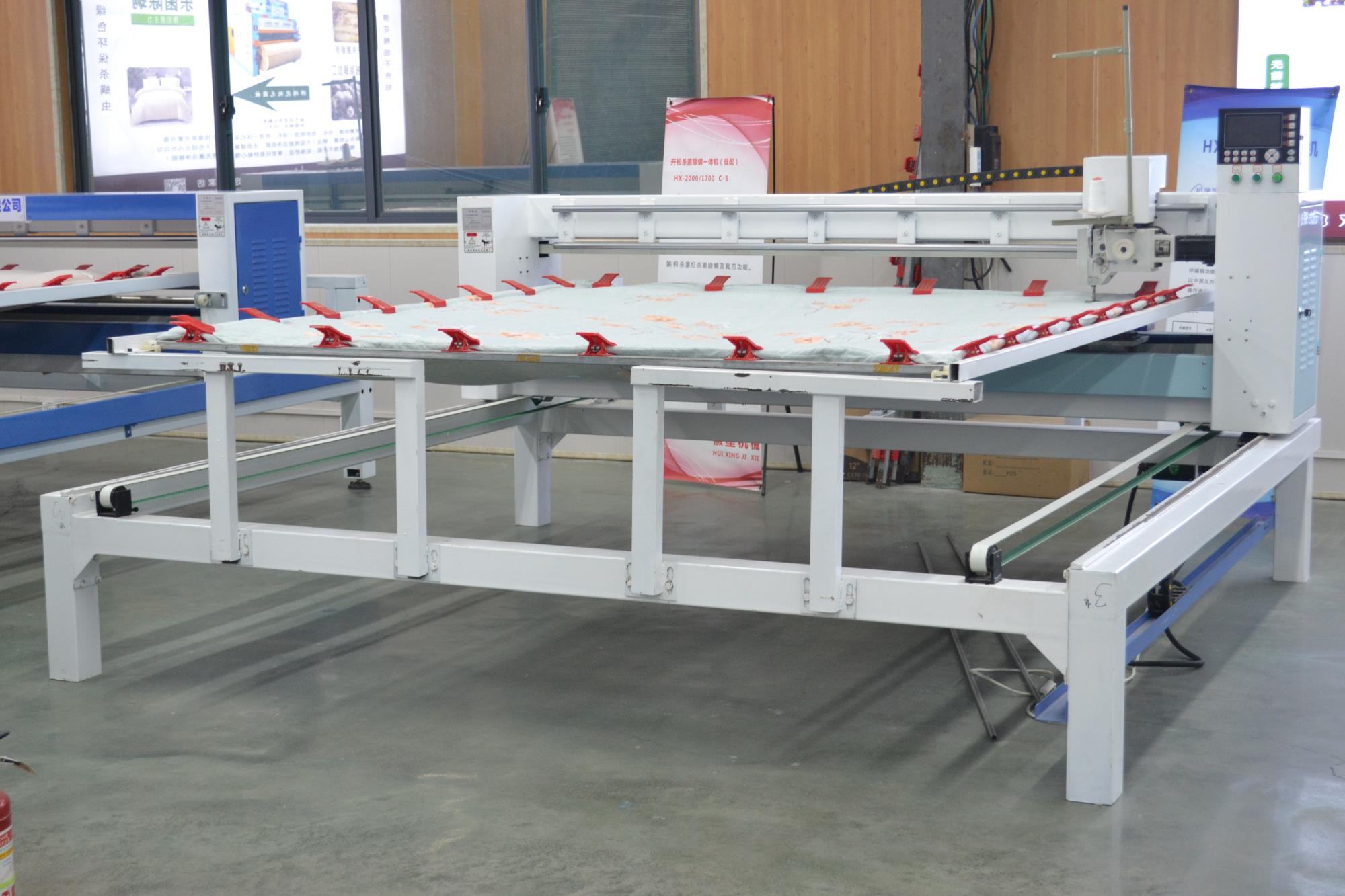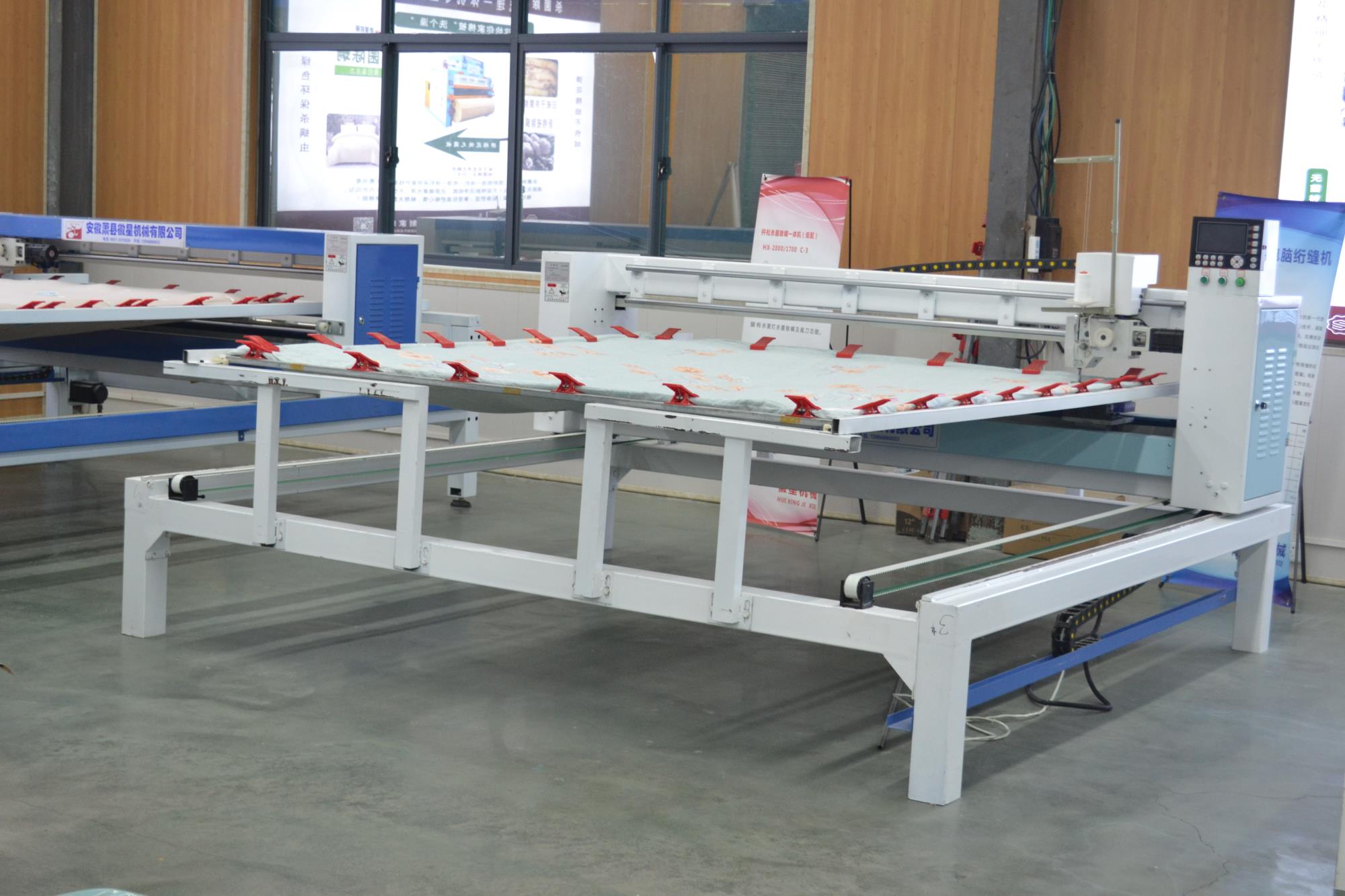 整機(jī)運(yùn)行穩(wěn)定,噪音小,傳動(dòng)結(jié)構(gòu)壽命長(zhǎng),斷線檢查,面線段線自動(dòng)停機(jī),工作燈,穿線更方便,絎縫精度高,噪音接近無(wú)聲,液晶顯示器,小控制柜,占地小;配備新一代絎縫機(jī)專用電腦,內(nèi)部實(shí)時(shí)檢測(cè),確保不拉壞被子,電腦、電機(jī)出現(xiàn)故障自動(dòng)停機(jī),同時(shí)電腦畫(huà)面顯示故障內(nèi)容,同時(shí)自帶幾百種常用花型。