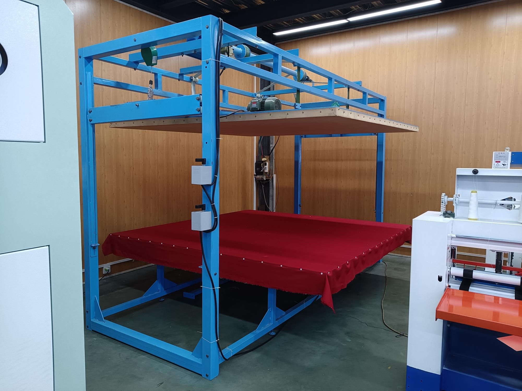 本全自動(dòng)揉棉機(jī)為徽星機(jī)械機(jī)械制造有限公司研發(fā)新型產(chǎn)品,該全自動(dòng)揉棉機(jī)由傳統(tǒng)的上傳動(dòng)方式,改為下傳動(dòng)方式。上傳動(dòng)全自動(dòng)揉棉機(jī)的主要缺點(diǎn)是噪音高,振動(dòng)副度比較大,安裝時(shí)要配合地錨來(lái)固定機(jī)器,本新型機(jī)器(全自動(dòng)揉棉機(jī))的下傳動(dòng)裝置改變了以上的缺點(diǎn)。新一代全自動(dòng)揉棉機(jī)(揉磨機(jī))操作方便,易于使用。適用于棉胎成型加工廠、踏花被廠、棉胎加工個(gè)體戶使用;全自動(dòng)揉棉機(jī)揉制的棉胎(絮)平整、美觀、結(jié)實(shí)、耐用,全自動(dòng)揉棉機(jī)(揉磨機(jī))使傳統(tǒng)的人工強(qiáng)體力勞動(dòng)變?yōu)楸鞠盗袡C(jī)器的自動(dòng)化機(jī)械作業(yè),特別是自動(dòng)升降系統(tǒng)和定時(shí)揉棉設(shè)定,大大減輕了工人的勞動(dòng)強(qiáng)度、提高了勞動(dòng)效率。并且一人可看管多機(jī),效益非常顯著。全自動(dòng)揉棉機(jī)其原理是電機(jī)帶動(dòng)偏心運(yùn)轉(zhuǎn)使上揉板運(yùn)動(dòng),將棉鋪磨平、壓緊,使棉纖維與網(wǎng)線結(jié)合,成型棉胎。